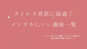気持ちをリセットしたい方は、外の空気を吸ったり自然を眺めるだけでも心が落ち着くことがあり、ストレス発散につながる趣味を知りたい場合は《ストレス発散に最適!メンタルにいい趣味一覧》も合わせて読むとより選びやすくなります。